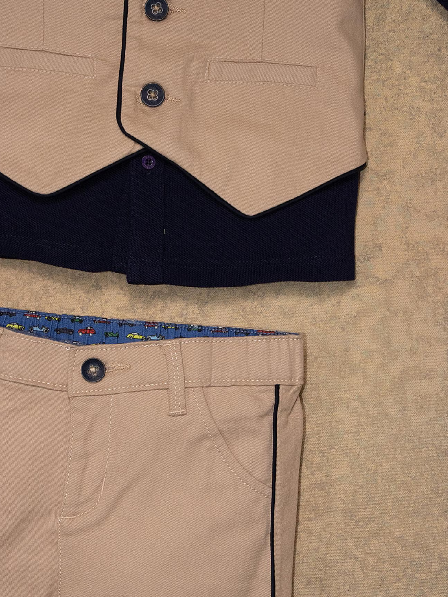 Baby Boys Beige Solid Waistcoat and Shirt with Trouser (Set of 3)